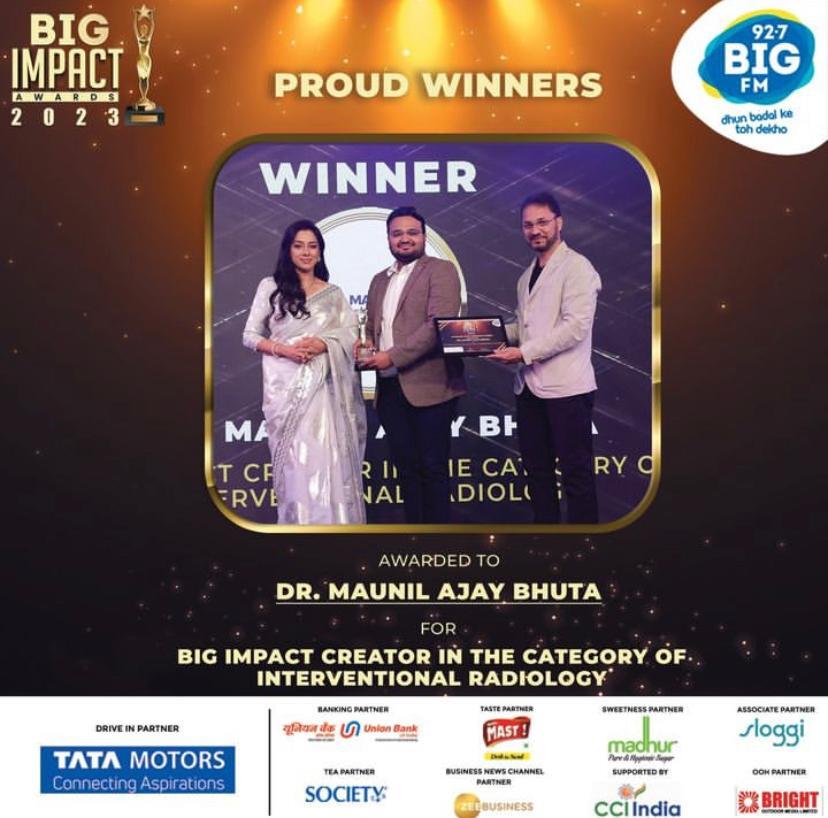 Dr Maunil Bhuta received an award for creating big impact in the catagory of interventional Radiology
