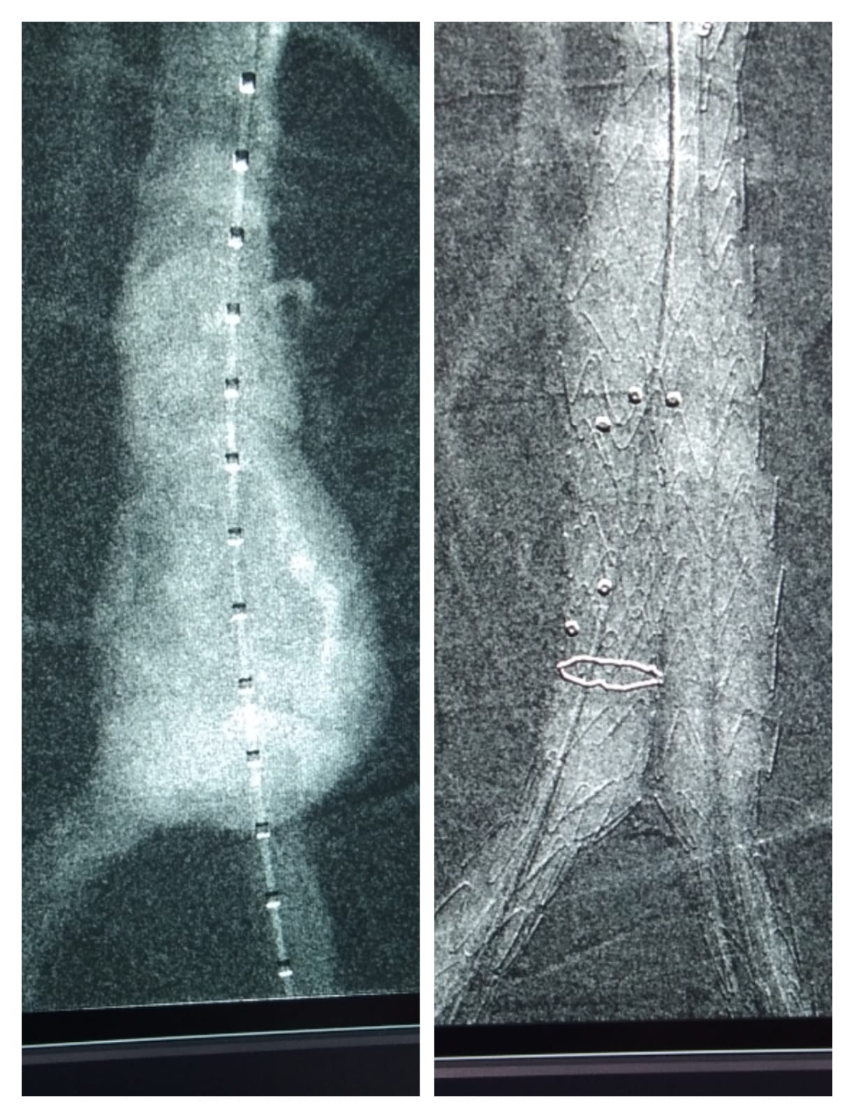Complete total occlusion ( CTO) in Distal Aorta. Pre Procedure- No blood flow due to complete stenosis & Post Procedure- Deployed Stent & restore complete blood flow