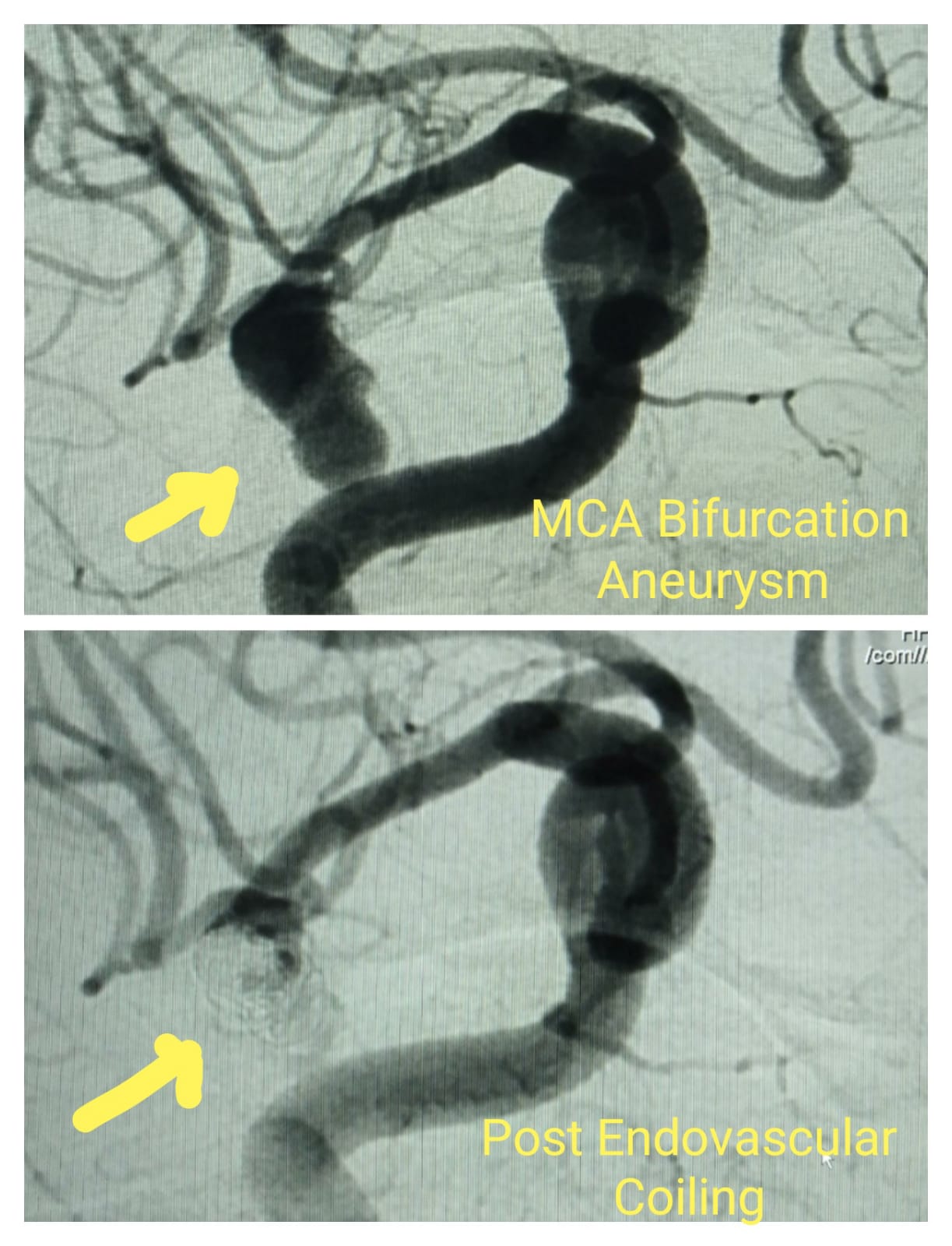 MCA bifurcation Aneurysm - Pre Procedure & Post Endovascular Coiling