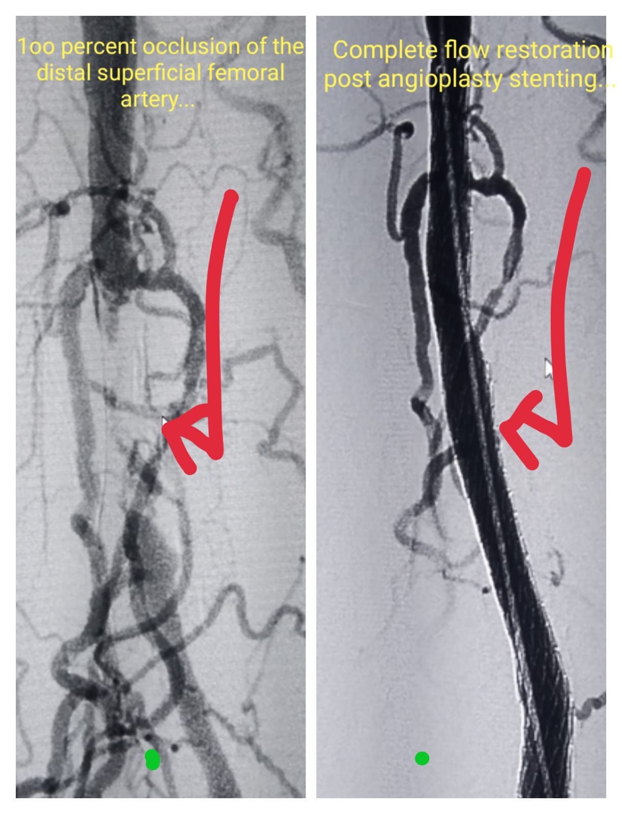 Superficial Artery stenting- Pre Procedure & Complet blood flow restoration post stenting